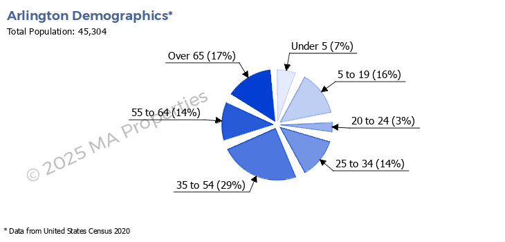 Arlington is categorized by MAPC as a Streetcar Suburb. These communities comprise village and transit-oriented residential neighbourhoods with a mix of single family homes, 2 - 4 family houses, and mid-sized multifamily housing. New growth occurs through limited redevelopment and infill and expansion of existing structures. More affluent than the Metro Core, the population is moderately diverse and stable, with a growing share of school-age children.